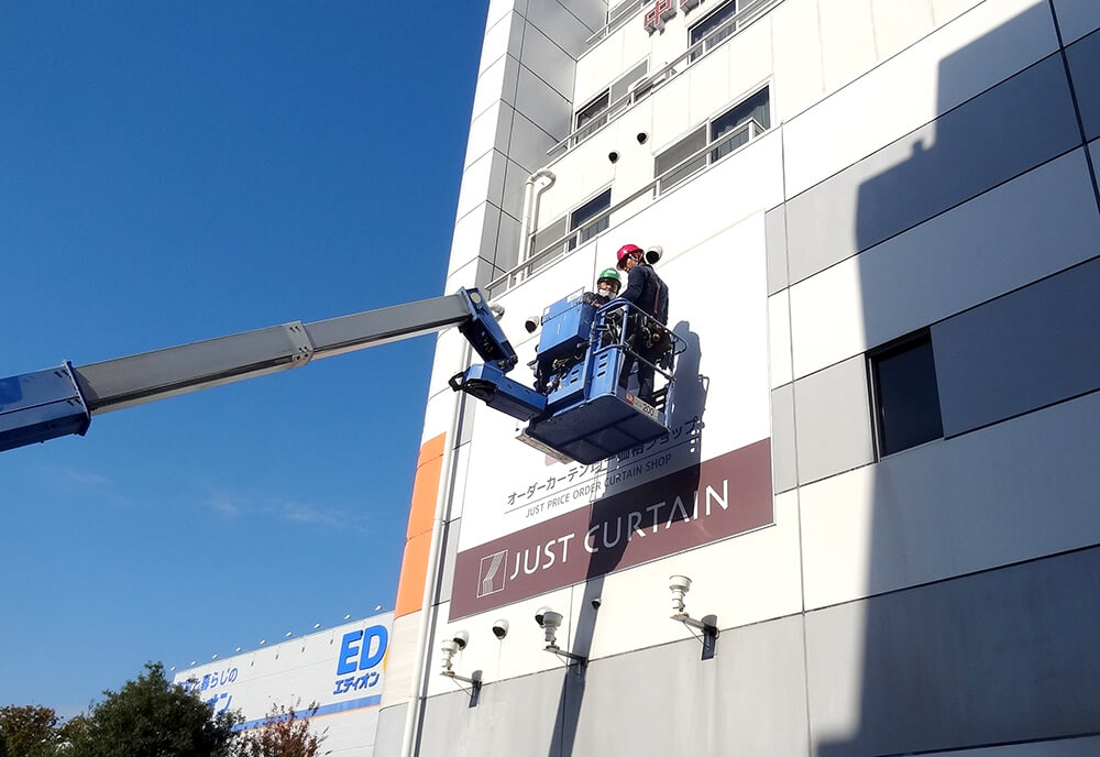 数メートルや数十メートルといった大型看板の製作・設置工事も全国ご対応しております!壁面看板から自立した大型看板まで大型の看板もぜひお任せください!